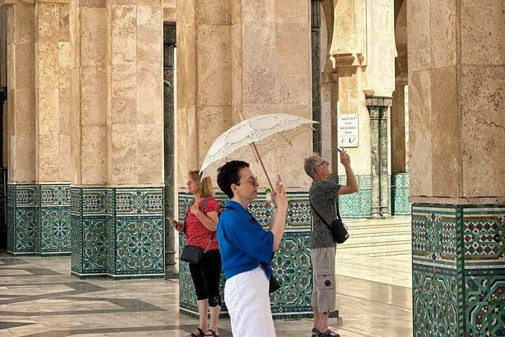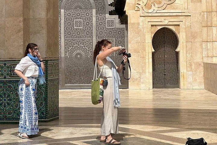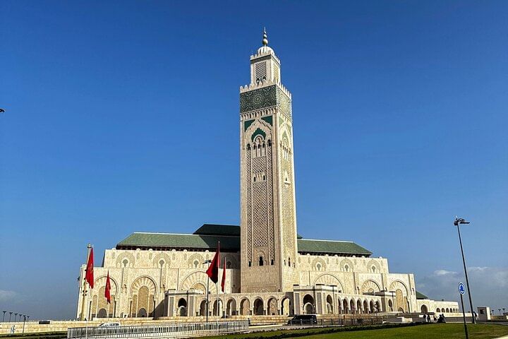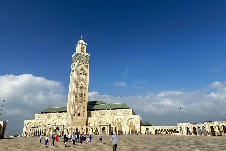 Afterwards, enjoy a Moroccan lunch to savor local flavors. Lastly, unwind at one of Casablanca's beautiful beaches before beginning your return journey to Marrakech, reflecting on a day filled with exploration and cultural immersion in this historic city.