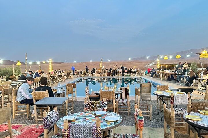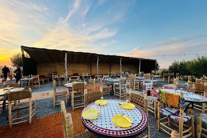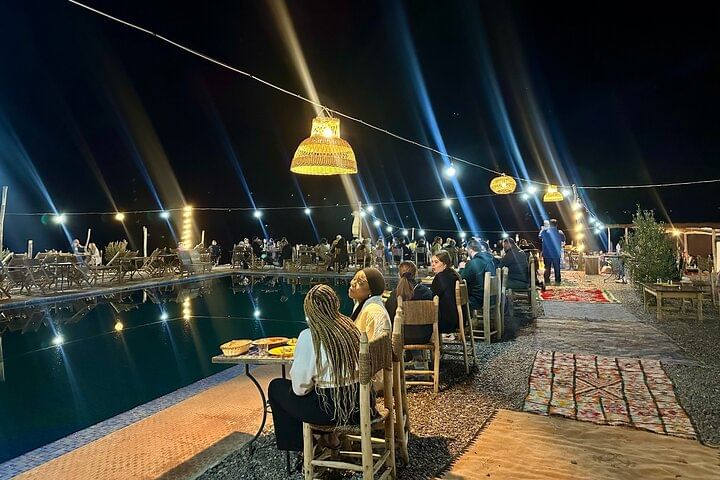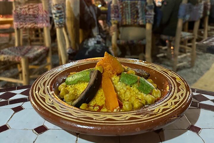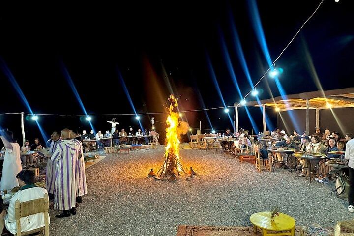 Discover the local flavors with a tasty dinner of salads, tagines, bread, and couscous. After dinner, watch a traditional show while listening to Berber music around the campfire, an exploring the authentic Fire Show before the Return to Marrakech.