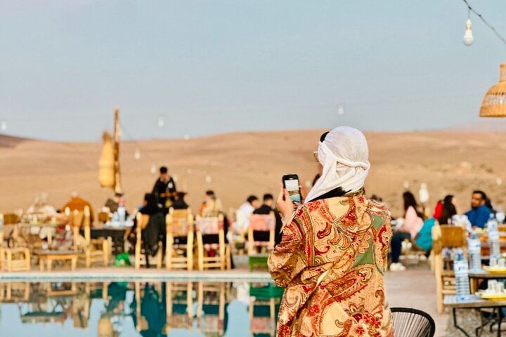 Explore the breathtaking landscapes of the Agafay Desert on this excursion from Marrakech, where you can enjoy 20 minutes of camel riding, 20 minutes of quad biking, or both, depending on the option you book. Stop for a traditional cup of tea and admire the colors of the sunset as you enjoy an authentic dinner.