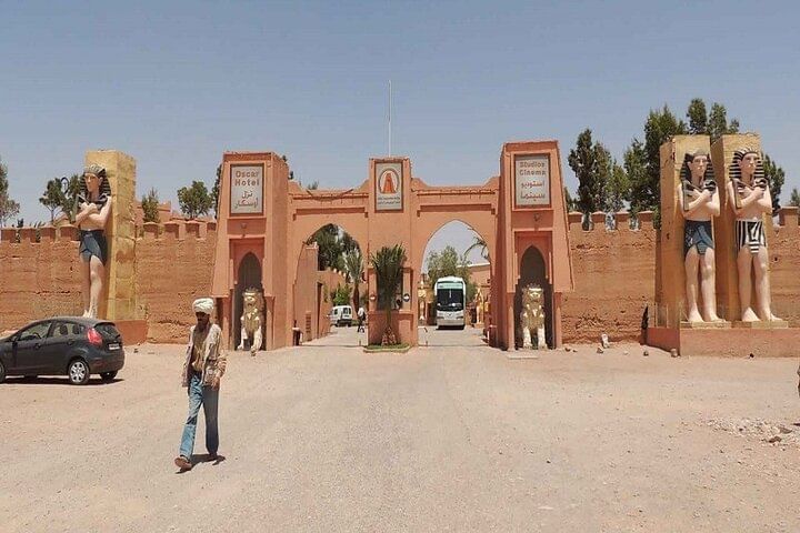 Ait Benhaddou is an interesting day trip from Marrakech after you cross the High Atlas Mountains, Ait Benhaddou is the UNESCO site classified since 1987 where few families are still living in Ait Benhaddou, along the way you will admire the Berber villages in the mountains of High Atlas village. 4km of rocky off-road along the salty valley of Ounila to get to Ait Benhaddou kasbah, natural decoration for many movies which were shot in the area. Take a walk and cross the dried river with our professional driver/guide to dominating the kasbahs of Ait Benhaddou. Free time to explore the kasbahs of Ait Benhaddou and have lunch in a local restaurant overlooking the Ksar, after lunch we will continue to Ouarzazate; visit cinema Studios and the Kasbah Taourirt another fortified palace of Pacha El Glaoui. In the afternoon, we will drive back to Marrakech via the Tizi n’Tichka.