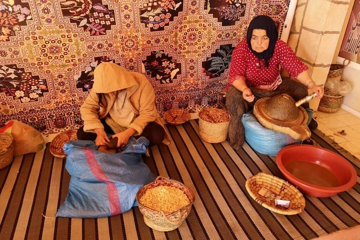 you will start traveling to the coastal city of Essaouira. Getting there after about a 2 and a half-hour drive to start exploring the city. You’ll visit the Skala Fortress; see Thuya wood carved by artisans; walk through the alleys of the medina and view hundreds of handicrafts. This "City of the Wind" attracts surfers from all over the world. Essaouira knew many civilizations - including the Portuguese occupation, which affects much of its architecture - however, it remains a small village with much history. Because of its size and its characteristic blue doors and washed walls, it is also regarded as Morocco’s "Jewel of the Atlantic”. You will also visit the women's co-operative of Argan oil. Here they extract the oil that is famous for its culinary, cosmetic and medicinal properties. Lunch will be done the Moroccan way – fresh fish “cooked in order” at the fish market. In the afternoon you will travel back to Marrakech