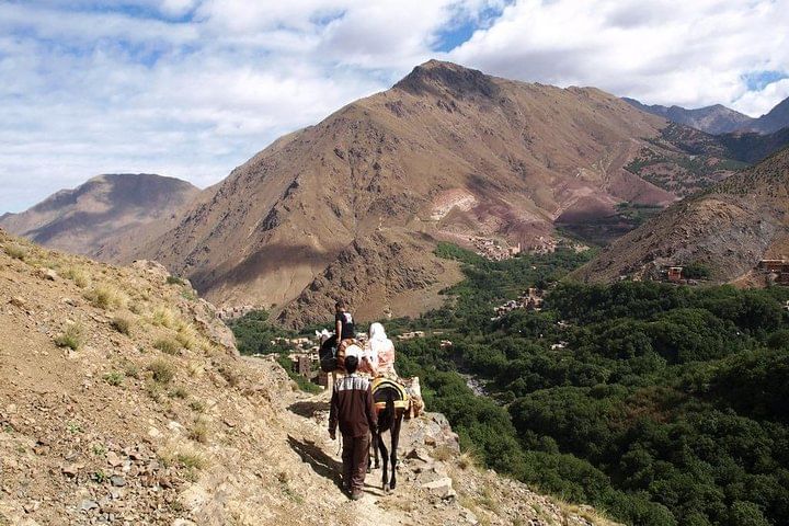 Atlas mountains and imlil are the most spectacular day trips from Marrakech if you desire to get out of the city and delve in the authentic and rural side of Morocco. We will start oat 09 am from Marrakech by a 4WD vehicle or minivan-driving south up the Moulay Brahim Gorges, and the village of Asni very popular for its weekly market every Saturday then to Imlil Crossing a vibrantly green valley that stays fresh and lush even during the hottest days of the summer. Imlil is a small village at the foothills of the highest mountains in Morocco Toubkal mountain. Arrival meet our guide to start a walking and hiking tour towards the south to the Berber village of Aroumd, set in the upper-level foothills of the Western High Atlas mountains, the main trailhead with streams and paths branching out in all directions to get our lunch which will be served in a Berber house in the village of Aroumd or Tamatert.then drive to Marrakech