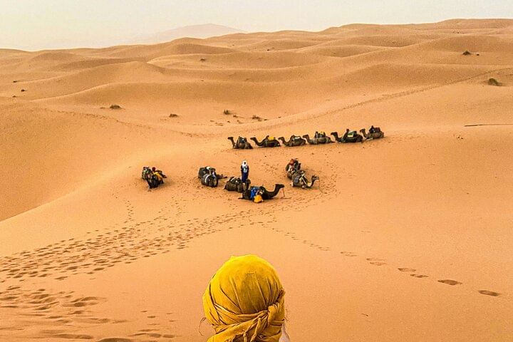 Catch the desert sunrise, then enjoy breakfast at the camp. After a camel ride back to the van, explore the Draa Valley’s palm oases and drive through the Tizi n’Tichka Pass. After lunch, continue to Marrakech, arriving by 7 PM to end your 2-day adventure.
